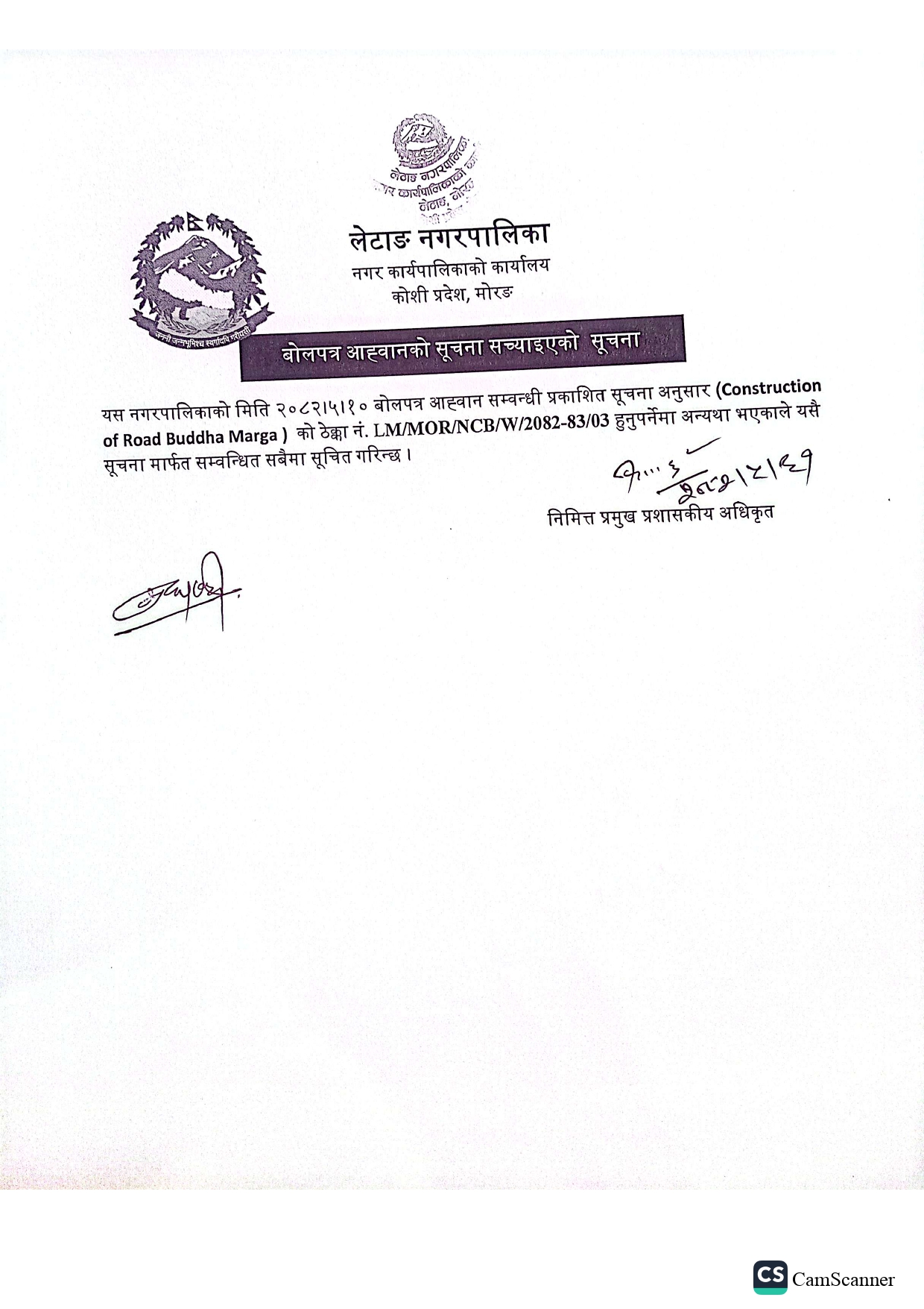 बोलपत्र आह्वानको सूचना सच्याइएको सूचना (प्रकाशन मितिः२०८२।०५।३१)
