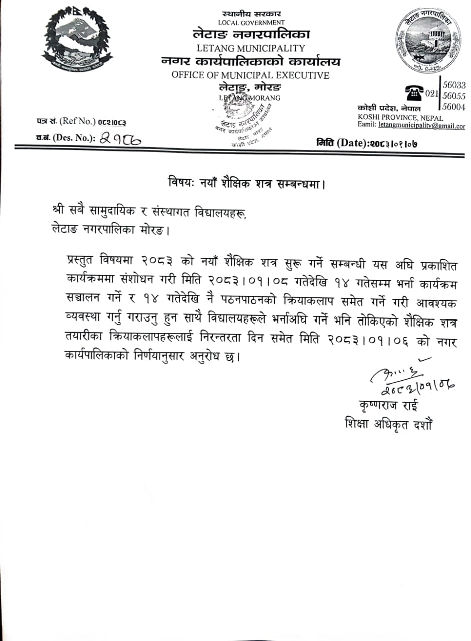 नयाँ शैक्षिक शत्र सम्बन्धमा ।