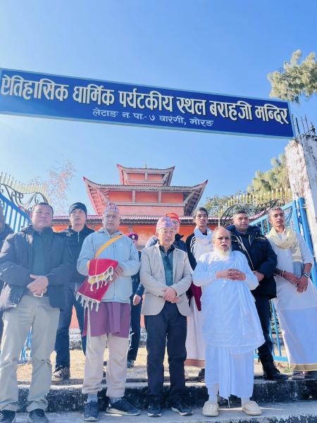 लेटाङ–७ स्थित ऐतिहासिक तथा पौराणिक महत्व बोकेको वराहजी मन्दिरमा आज प्राचीन हरिद्वार चताराधामका पीठाधीश जगतगुरु श्री श्री श्री १००८ वालसन्त मोहनशरण देवाचार्य ज्यू महाराजले दर्शन गर्नुभएको छ। नगर प्रमुख भूपेन्द्रकुमार लावती ज्यूको निमन्त्रणामा महाराजज्यू लेटाङ–७ वाराङ्गी पुगेर वराहजी मन्दिरको दर्शन गर्दै आशीर्वाद प्रदान गर्नुभएको हो। यस अवसरले धार्मिक पर्यटन प्रवर्द्धनमा थप टेवा पुग्ने विश्वास गरिएको छ।